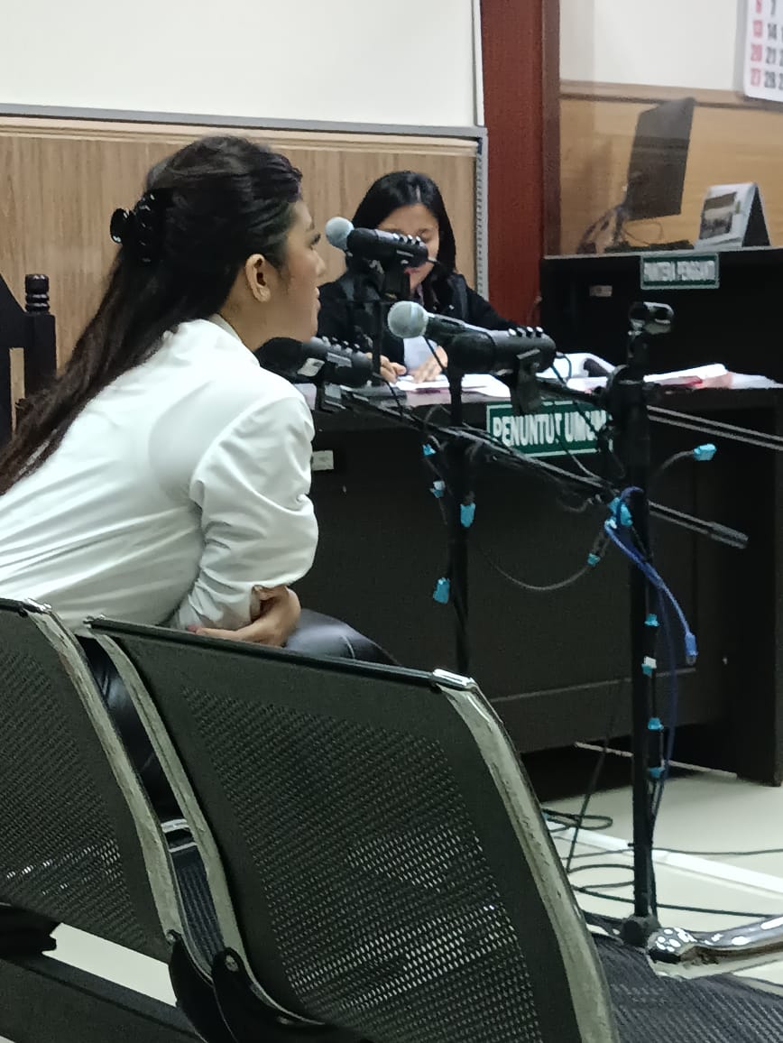 Saksi Popy Desiyanti SH dalam persidangan di hadapan. Majelis hakim Mangapul girsang SH, Jpu Presilia SH.