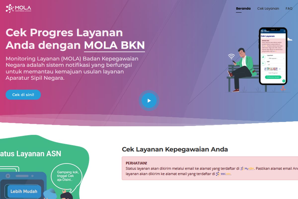 Untuk memudahkan peserta, BKN menghadirkan layanan digital bernama Mola BKN (Monitoring Layanan ASN).